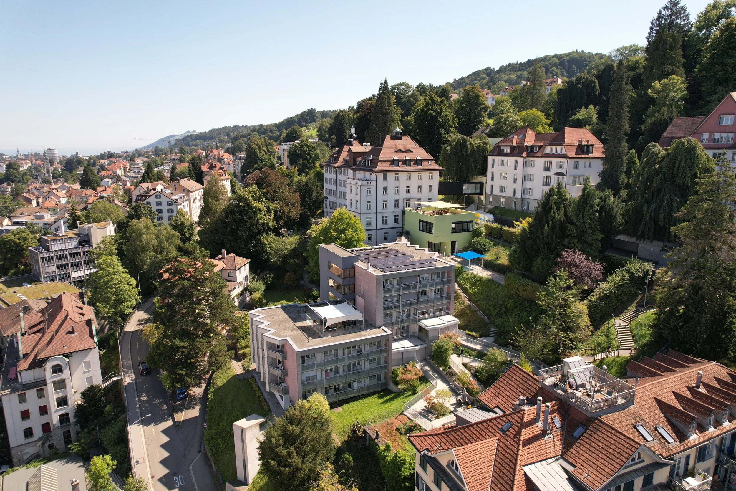 Unsere modern ausgestatteten Zimmer mit eigener Dusche und WC schaffen Raum für Selbstbestimmung und Wohlbefinden. Unser engagiertes Team sorgt mit Herz und Erfahrung dafür, dass Sie sich jederzeit sicher, respektiert und gut aufgehoben fühlen. Das Alterszentrum am Schäflisberg verbindet das Beste aus zwei Welten: zentral gelegen in St. Gallen und dennoch ein Ort der Ruhe und des Wohlbefindens. Ein einmaliges Highlight ist die wunderschöne Aussicht auf die weltbekannte St. Galler Kathedrale, UNESCO-Weltkulturerbe und Wahrzeichen der Stadt.